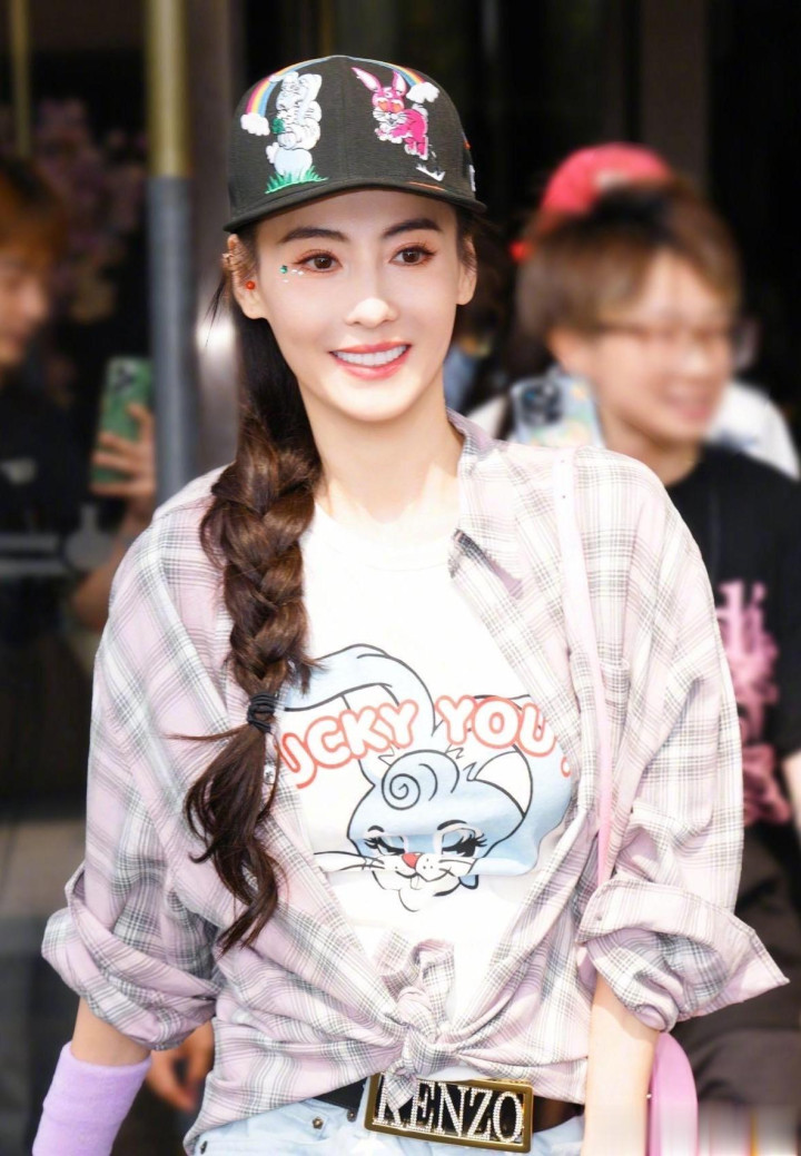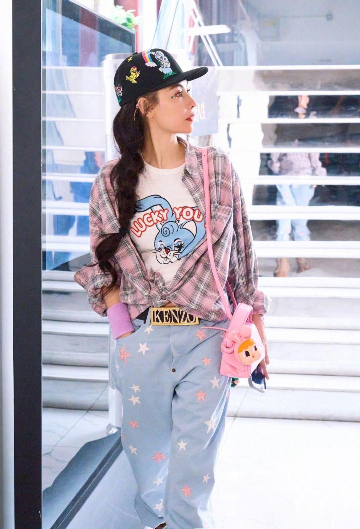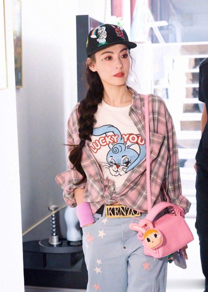 又是被张柏芝美哭的一天! 格子衬衫搭配印花牛仔裤, 状态好到发光