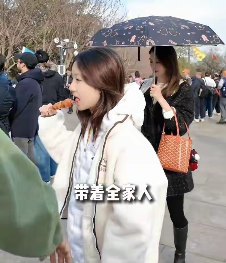 由于当天还是有些太阳的,所以洪欣还特意打了一把遮阳伞,想要保护好自己的状态。