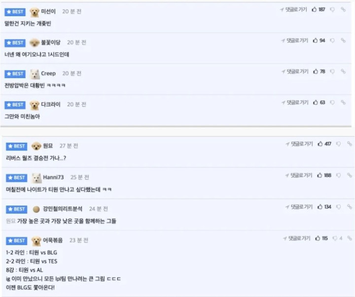 直播吧10月18日讯瑞士轮第四个比赛日BLG不敌G2,掉入1-2小组,赛后韩国网友对此展开热议;