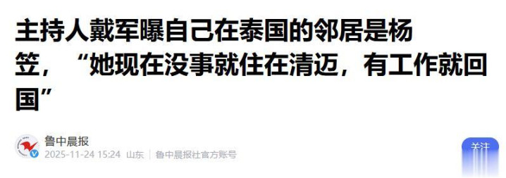 戴军一句“杨笠住我清迈对门”,直接把这位消失在大众视野里的脱口秀红人拽上了热搜。