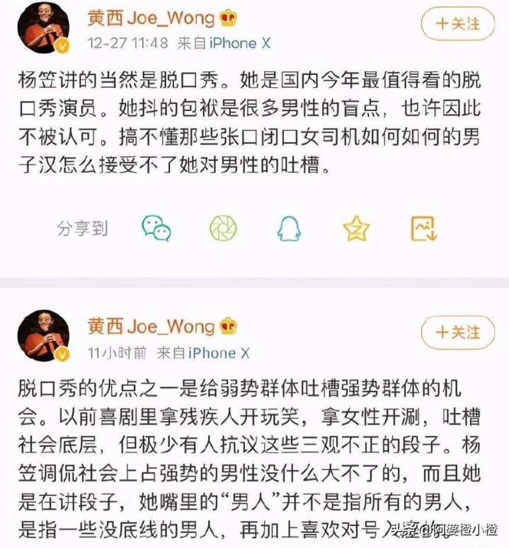 当然这也只是部分网友,有位网友称,只有喜欢对号入座的人才会选择去攻击一个讲笑话的女性。