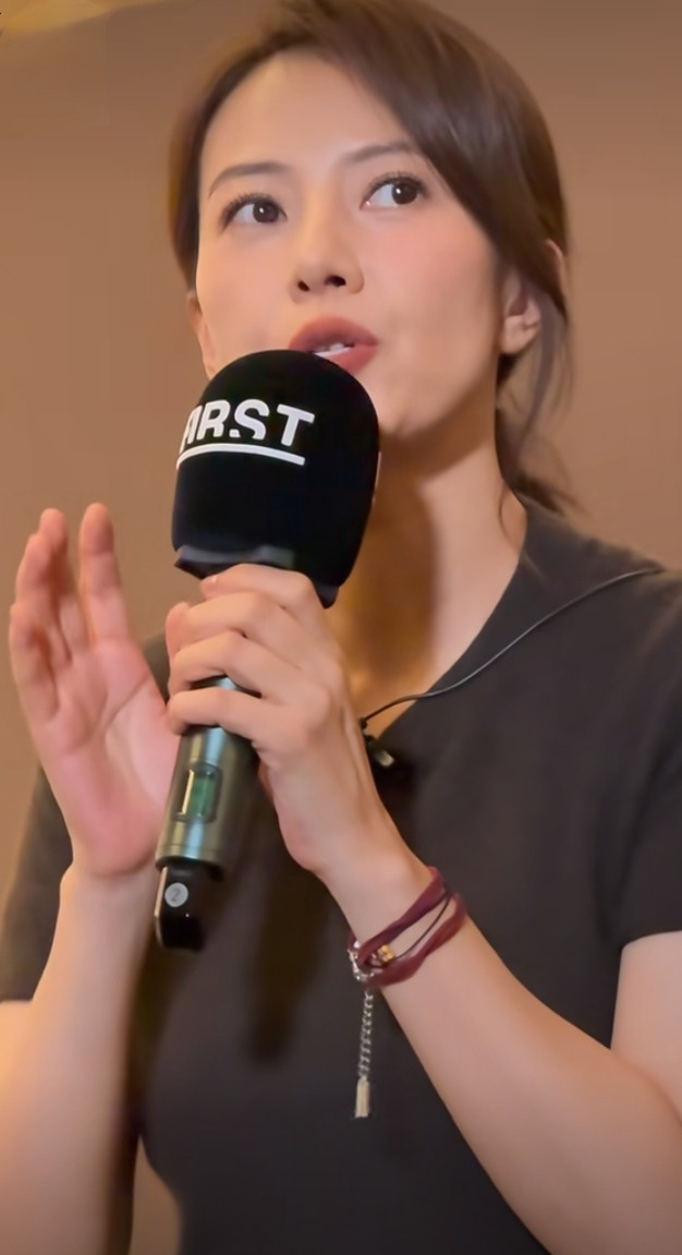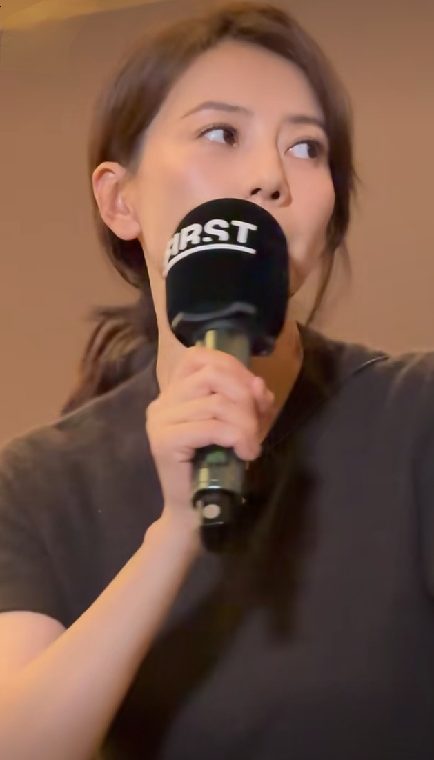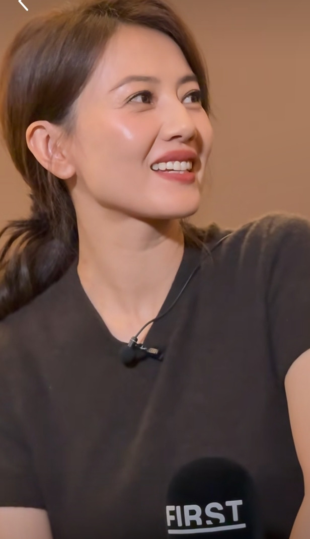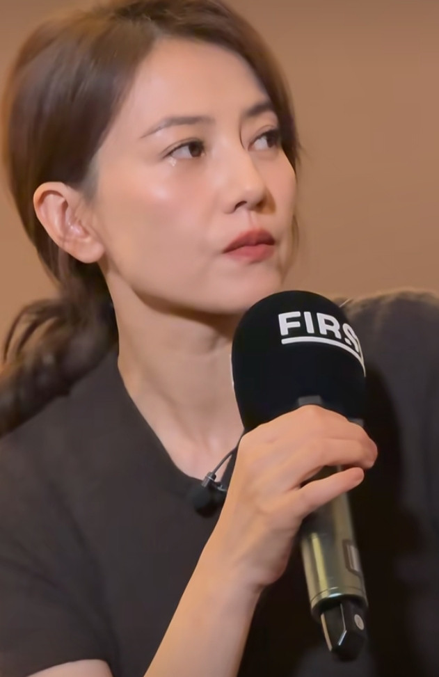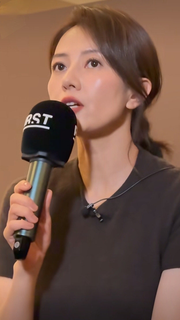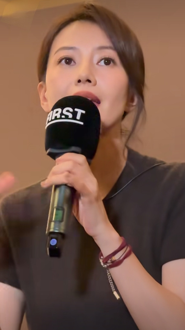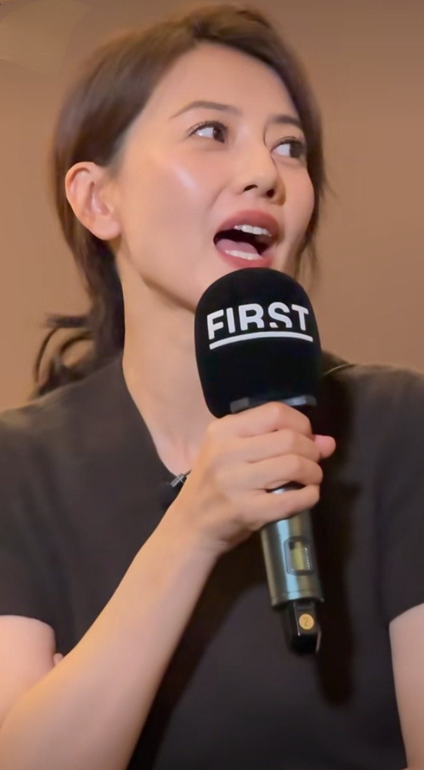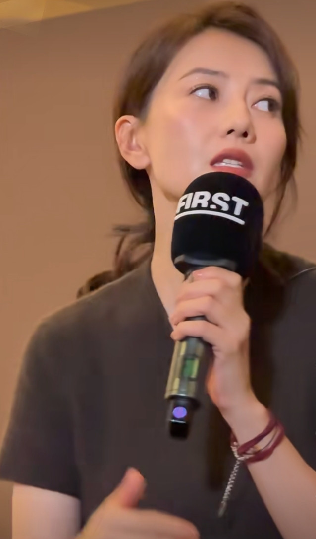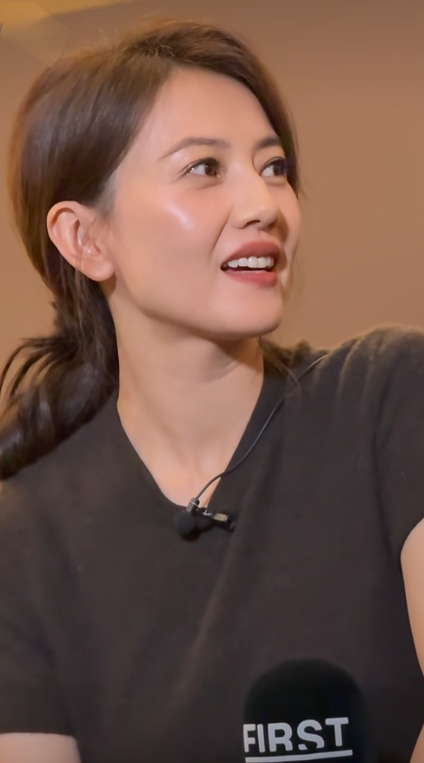 高圆圆出席FIRST活动, 深灰短袖搭卡其裤, 低马尾造型优雅大方