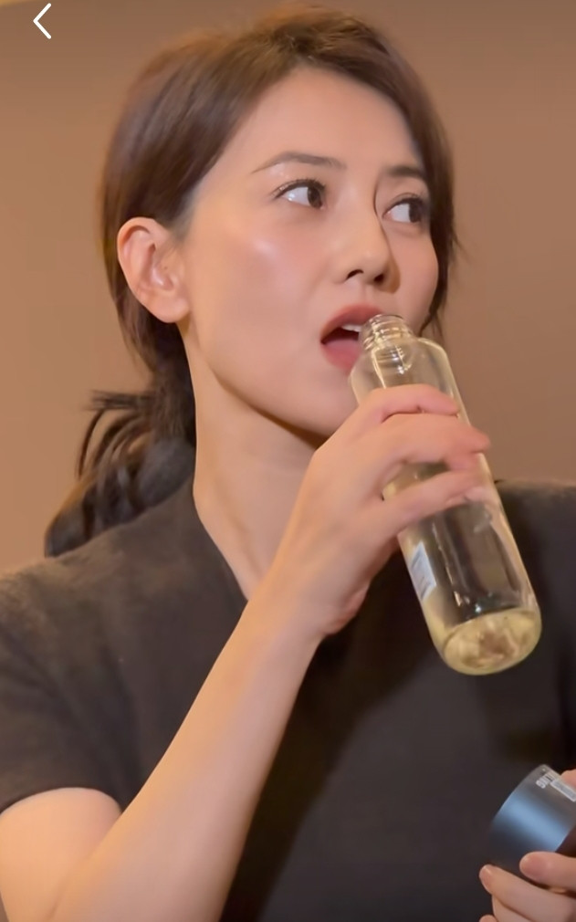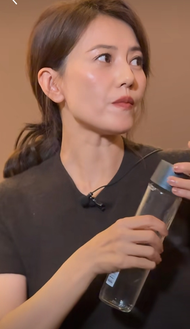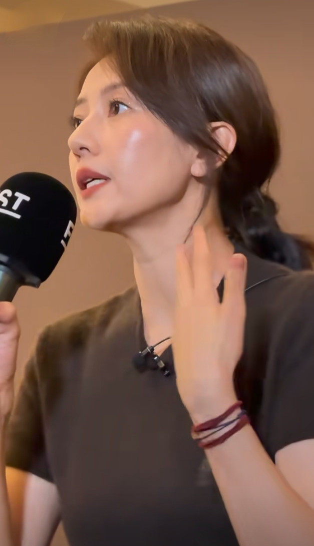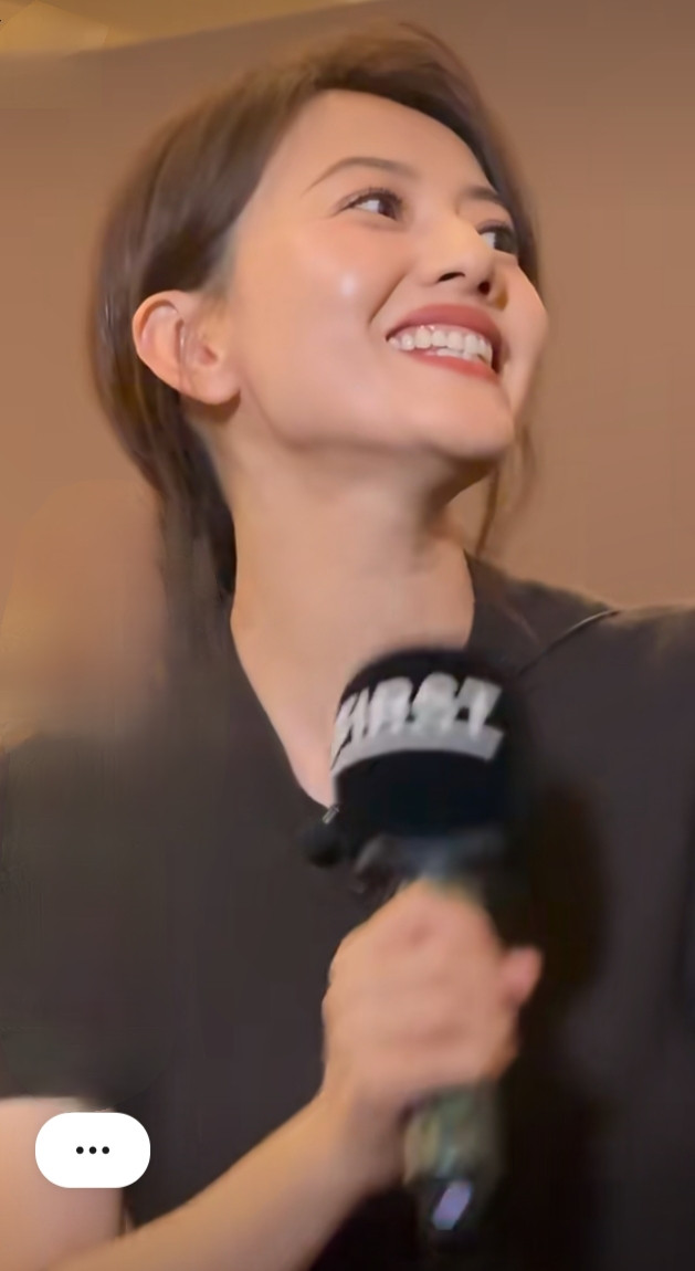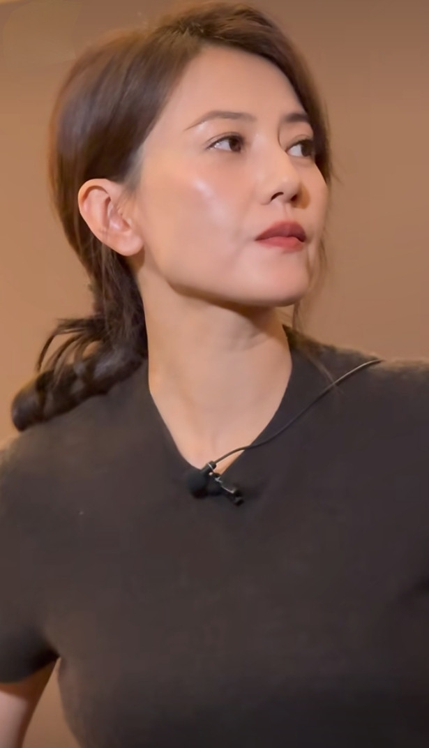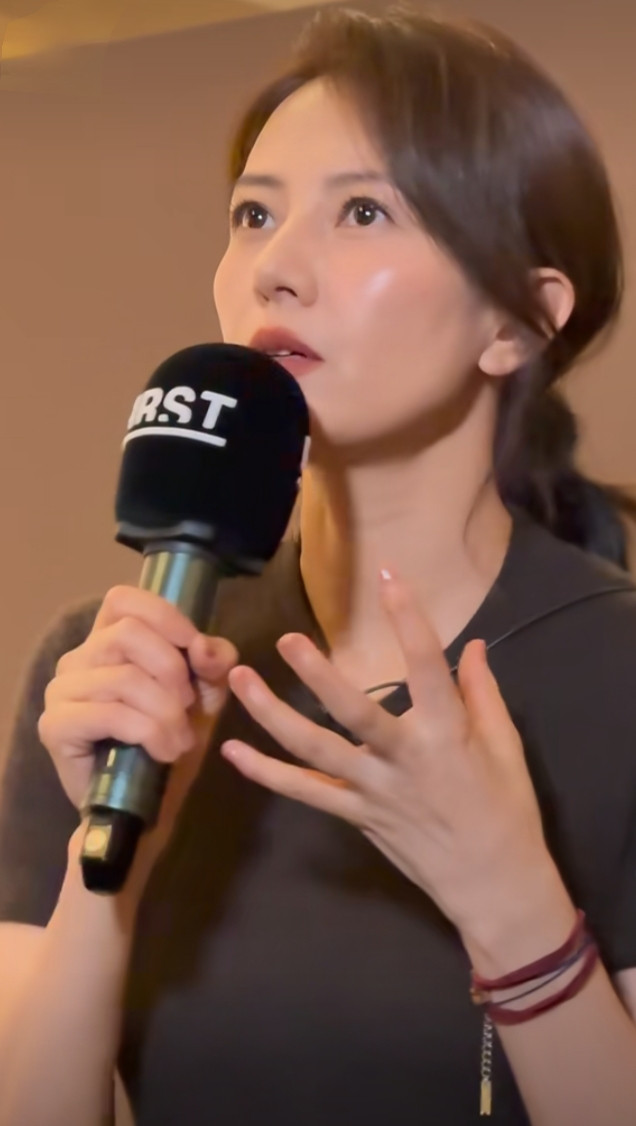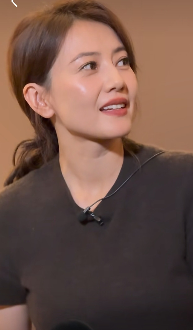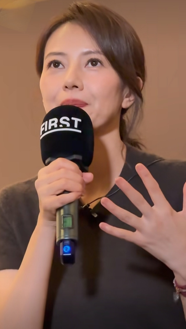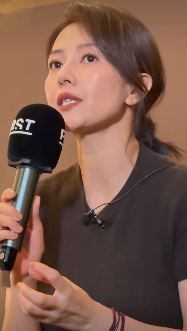 高圆圆出席FIRST活动, 深灰短袖搭卡其裤, 低马尾造型优雅大方