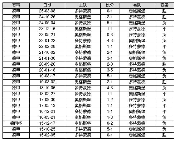 奥格斯堡 VS 多特蒙德两队近10年的交战次数为22场,奥格斯堡5胜5平12负,赢球概率为22.7%,平局概率为22.7%,输球概率为54.5%。