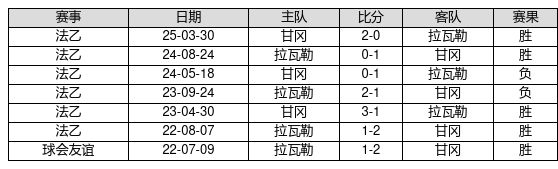 甘冈 VS 拉瓦勒两队近10年的交战次数为7场,甘冈5胜0平2负,赢球概率为71.4%,平局概率为0.0%,输球概率为28.6%。